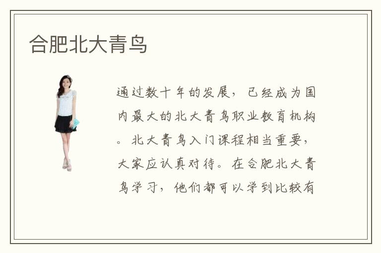 通過(guò)數(shù)十年的發(fā)展,已經(jīng)成為國(guó)內(nèi)最大的北大青鳥(niǎo)職業(yè)教育機(jī)構(gòu)。北大青鳥(niǎo)入門課程相當(dāng)重要,大家應(yīng)認(rèn)真對(duì)待。在合肥北大青鳥(niǎo)學(xué)習(xí),他們都可以學(xué)到比較有實(shí)際用途的一些專業(yè)性技術(shù)。答案是肯定的,合肥北大青鳥(niǎo)學(xué)校也用這十幾年的時(shí)間證明了它的資質(zhì)和實(shí)力。他們都為合肥北大青鳥(niǎo)學(xué)校里面的學(xué)生們提供了工作崗位。合肥北大青鳥(niǎo)是北京北大青鳥(niǎo)的分校區(qū),是一所專門從事于it培訓(xùn)的組織機(jī)構(gòu),在全國(guó)已經(jīng)有200多所分校了,可見(jiàn)辦學(xué)規(guī)模的龐大。這樣優(yōu)秀的北大青鳥(niǎo)學(xué)校難道你不想去嗎。據(jù)了解合肥北大青鳥(niǎo)是當(dāng)?shù)乇容^有特色的北大青鳥(niǎo)培訓(xùn)機(jī)構(gòu),辦校時(shí)間比較長(zhǎng),至今已經(jīng)培養(yǎng)了成千上萬(wàn)的畢業(yè)生,很多畢業(yè)生都成為行業(yè)中的佼佼者。而合肥北大青鳥(niǎo)學(xué)費(fèi)的老師們都是比較專業(yè)的,培養(yǎng)出的學(xué)生都是比較出色的。