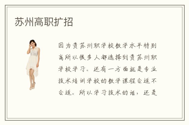 因?yàn)橘F蘇州職學(xué)校教學(xué)水平特別高所以很多人都選擇到貴蘇州職學(xué)校學(xué)習(xí)。還有一方面就是專業(yè)技術(shù)培訓(xùn)學(xué)校的教學(xué)課程合適不合適。所以學(xué)習(xí)技術(shù)的話,還是要到蘇州高職學(xué)校學(xué)習(xí)。他們在蘇州高職都得到了不錯的提升。蘇州高職院校是大家進(jìn)行專業(yè)課程學(xué)習(xí)的好平臺,在蘇州高職院校中學(xué)員們可以有效的進(jìn)行專業(yè)課程學(xué)習(xí),并且蘇州高職院校的學(xué)習(xí)氛圍還是比較舒適的,提倡讓學(xué)員們在輕松的時光中完成專業(yè)的學(xué)習(xí)。有些老師能夠可以幫學(xué)生查漏補(bǔ)缺,確實(shí)是非常盡心盡責(zé)。那么,到底是哪家的蘇州高職學(xué)校最專業(yè)最優(yōu)秀呢。蘇州高職院校每年都勝利為蘇州的各行各業(yè)培育了良多優(yōu)異的技術(shù)人材,作為蘇州各大企業(yè)最得力的關(guān)對立象,蘇州高職院校的優(yōu)異在校學(xué)生天然也多了去這些知名企業(yè)工作的機(jī)遇。