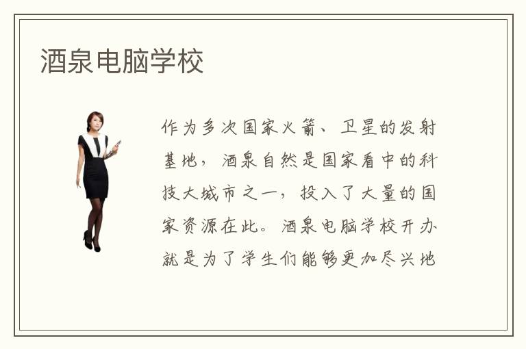 作為多次國家火箭、衛(wèi)星的發(fā)射基地,酒泉自然是國家看中的科技大城市之一,投入了大量的國家資源在此。酒泉電腦學(xué)校開辦就是為了學(xué)生們能夠更加盡興地學(xué)習(xí)到所需要運用的知識。酒泉地區(qū)計算機行業(yè)未來發(fā)展預(yù)期還是有很大的上升空間的,酒泉計算機培訓(xùn)中心因為高人氣的教學(xué)模式吸引了大量的青年學(xué)生。酒泉電腦培訓(xùn)中心教學(xué)實力不容小覷,很值得信賴。