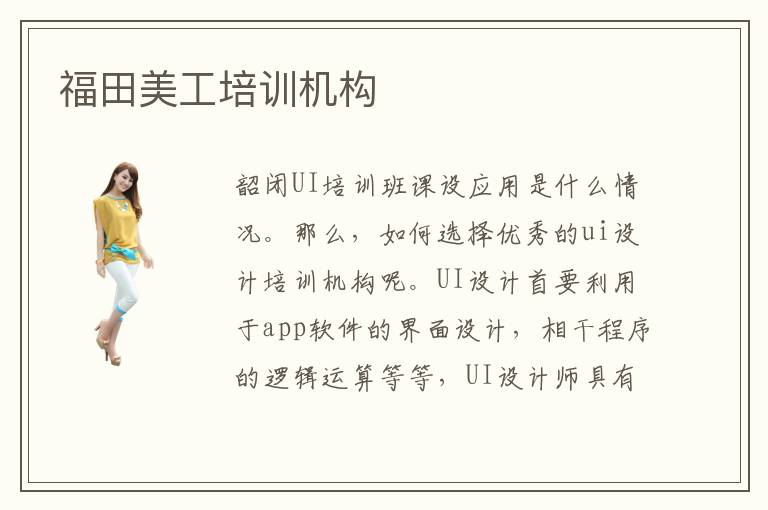 韶閉UI培訓(xùn)班課設(shè)應(yīng)用是什么情況。那么,如何選擇優(yōu)秀的ui設(shè)計(jì)培訓(xùn)機(jī)構(gòu)呢。UI設(shè)計(jì)首要利用于app軟件的界面設(shè)計(jì),相干程序的邏輯運(yùn)算等等,UI設(shè)計(jì)師具有坦蕩的就業(yè)市場(chǎng),是現(xiàn)今世比較缺少的職位之一。其實(shí)ui設(shè)計(jì)內(nèi)容越來越多,空間也越來越大,有的同學(xué)對(duì)這些設(shè)計(jì)內(nèi)容感興趣,可以報(bào)名輔導(dǎo)機(jī)構(gòu)的教學(xué)課程。福田UI界面交互設(shè)計(jì)專業(yè)在國(guó)內(nèi)有不錯(cuò)的成長(zhǎng)前程,此刻能夠諳練把握UI設(shè)計(jì)的人其實(shí)不多,以是市場(chǎng)就業(yè)依然存在缺口,人人可以放松這個(gè)沖破口。這些知名的UI培訓(xùn)班地理位置在哪呢。有些學(xué)校確實(shí)很厲害,專業(yè)水平很高,教學(xué)思路清晰,學(xué)習(xí)規(guī)劃也非常明確,同學(xué)也有很多收獲。零基礎(chǔ)學(xué)ui設(shè)計(jì)容易學(xué)嗎。學(xué)習(xí)ui設(shè)計(jì)需要大概多永劫間。