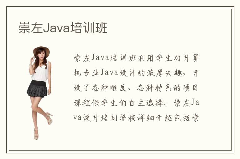 崇左Java培訓(xùn)班利用學(xué)生對計(jì)算機(jī)專業(yè)Java設(shè)計(jì)的濃厚興趣,開設(shè)了各種難度、各種特色的項(xiàng)目課程供學(xué)生們自主選擇。崇左Java設(shè)計(jì)培訓(xùn)學(xué)校詳細(xì)介紹包括崇左Java培訓(xùn)學(xué)校的教學(xué)特色、創(chuàng)辦意義、理論教學(xué)、實(shí)踐輔導(dǎo)等等,內(nèi)容豐富多彩,值得一看。崇左Java培訓(xùn)人才培養(yǎng)計(jì)劃是國內(nèi)的具有示范意義的一個(gè)計(jì)劃,崇左Java培訓(xùn)班自從開班以來都有不少的生源。