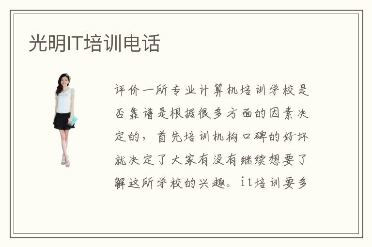 評價一所專業(yè)計算機培訓(xùn)學(xué)校是否靠譜是根據(jù)很多方面的因素決定的,首先培訓(xùn)機構(gòu)口碑的好壞就決定了大家有沒有繼續(xù)想要了解這所學(xué)校的興趣。it培訓(xùn)要多久,培訓(xùn)班的課程一般是一個月到三個月,當(dāng)然也有一些同學(xué)的基礎(chǔ)很差,打算從零開始學(xué)起,這時可能要半年左右的時間。那么,你知道光明IT培訓(xùn)學(xué)校到底哪家的教學(xué)方式比較適合你嗎。it技術(shù)有點復(fù)雜,許多同學(xué)沒有辦法通過自己的能力理解,也不知道如何改善應(yīng)用能力,所以會有相當(dāng)多的學(xué)習(xí)障礙,實力也會越來越糟糕。這就需要學(xué)生擦亮眼睛,在魚龍混雜的光明IT培訓(xùn)學(xué)校中發(fā)現(xiàn)高品質(zhì)的一家,然后對光明IT培訓(xùn)機構(gòu)進(jìn)行選擇。光明IT培訓(xùn)學(xué)校并沒有花費過多的時間、精力以及財力進(jìn)行對于自己企業(yè)的包裝宣傳,更注重的是對于自身教學(xué)課程以及教學(xué)質(zhì)量的提升,是用自己的實際教學(xué)能力來證明自己好口碑的。