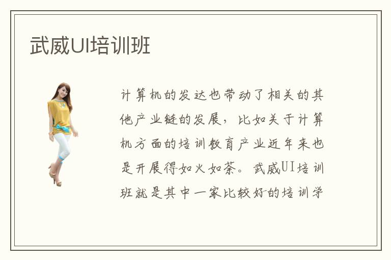 計算機的發(fā)達也帶動了相關的其他產(chǎn)業(yè)鏈的發(fā)展,比如關于計算機方面的培訓教育產(chǎn)業(yè)近年來也是開展得如火如荼。武威UI培訓班就是其中一家比較好的培訓學校,武威UI設計培訓學校有優(yōu)質的教學資源,老師也可以教得得心應手。武威UI設計師人才資源目前還是比較好的,武威地區(qū)UI設計行業(yè)發(fā)展前景怎么樣?武威UI培訓機構中心未來發(fā)展會好嗎?