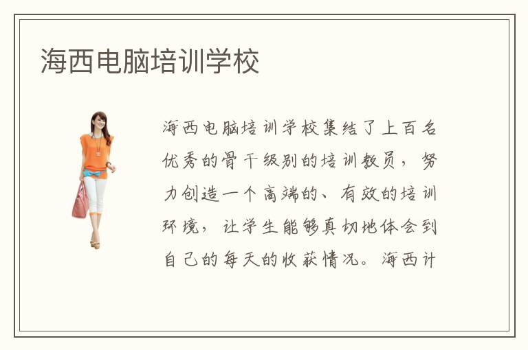 海西電腦培訓(xùn)學(xué)校集結(jié)了上百名優(yōu)秀的骨干級(jí)別的培訓(xùn)教員,努力創(chuàng)造一個(gè)高端的、有效的培訓(xùn)環(huán)境,讓學(xué)生能夠真切地體會(huì)到自己的每天的收獲情況。海西計(jì)算機(jī)培訓(xùn)中心口碑情況怎么樣?海西計(jì)算機(jī)學(xué)校穩(wěn)扎穩(wěn)打,默默做好自己的教育事業(yè),因此,其發(fā)展口碑還是很不錯(cuò)的。海西電腦培訓(xùn)專業(yè)教學(xué)水平高不高?我們持有肯定的答案,海西電腦學(xué)校的教育資源都很優(yōu)質(zhì)。