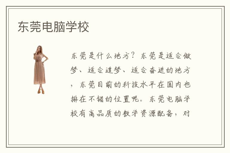 東莞是什么地方?東莞是適合做夢、適合追夢、適合奮進的地方,東莞目前的科技水平在國內也排在不錯的位置呢。東莞電腦學校有高品質的教學資源配備,對于教育事業(yè)也是得心應手。東莞電腦計算機行業(yè)發(fā)展現(xiàn)狀情況良好并且持續(xù)出現(xiàn)呈上升趨勢。東莞計算機培訓機構排名可信嘛?如何選擇一個優(yōu)秀的東莞計算機學校是保證學好計算機的前提,因此,要好好選擇東莞電腦學校。