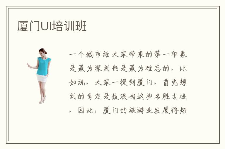 一個(gè)城市給大家?guī)淼牡谝挥∠笫亲顬樯羁桃彩亲顬殡y忘的,比如說,大家一提到廈門,首先想到的肯定是鼓浪嶼這些名勝古跡,因此,廈門的旅游業(yè)發(fā)展得熱火朝天,而它的科學(xué)事業(yè)發(fā)展似乎被人們遺忘。廈門UI培訓(xùn)班于是展開了更大強(qiáng)度的培訓(xùn),吸引了不少學(xué)生。廈門UI技術(shù)發(fā)展現(xiàn)狀如何?廈門UI設(shè)計(jì)起步晚,但是并不妨礙其后起發(fā)展。廈門UI設(shè)計(jì)師薪資待遇水平好不好?