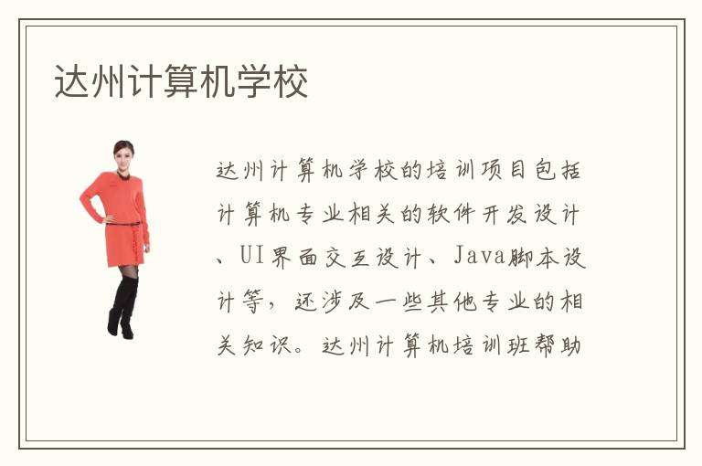 達(dá)州計(jì)算機(jī)學(xué)校的培訓(xùn)項(xiàng)目包括計(jì)算機(jī)專業(yè)相關(guān)的軟件開發(fā)設(shè)計(jì)、UI界面交互設(shè)計(jì)、Java腳本設(shè)計(jì)等,還涉及一些其他專業(yè)的相關(guān)知識(shí)。達(dá)州計(jì)算機(jī)培訓(xùn)班幫助學(xué)生們進(jìn)行的課外拓展提升有怎么樣的效果呢?達(dá)州計(jì)算機(jī)培訓(xùn)學(xué)校合理安排學(xué)生們的學(xué)習(xí)時(shí)間,保證高效地利用起學(xué)生們的課余時(shí)間。在達(dá)州電腦培訓(xùn)班學(xué)習(xí)有效果嘛?達(dá)州計(jì)算機(jī)學(xué)校對(duì)計(jì)算機(jī)培訓(xùn)自成一套。