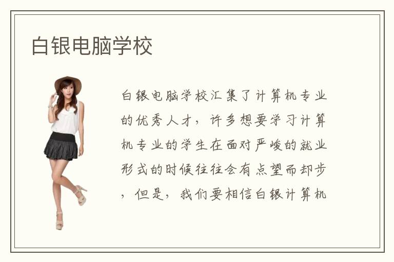 白銀電腦學校匯集了計算機專業(yè)的優(yōu)秀人才,許多想要學習計算機專業(yè)的學生在面對嚴峻的就業(yè)形式的時候往往會有點望而卻步,但是,我們要相信白銀計算機培訓學校能帶給學生們很好的學習體驗。白銀計算機培訓中心人力安排也是很合理的,白銀電腦培訓班培訓安排高品質的老師帶領學生學習作業(yè),保證完成布置的教學任務。白銀電腦學校培訓地址在什么地方?