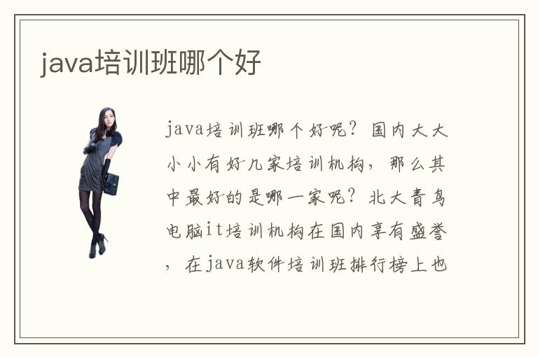 java培訓(xùn)班哪個(gè)好呢?國內(nèi)大大小小有好幾家培訓(xùn)機(jī)構(gòu),那么其中最好的是哪一家呢?北大青鳥電腦it培訓(xùn)機(jī)構(gòu)在國內(nèi)享有盛譽(yù),在java軟件培訓(xùn)軟件培訓(xùn)班排行榜上也是名列前茅。相信這個(gè)結(jié)果是大家從培訓(xùn)機(jī)構(gòu)的背景,口碑,師資力量,就業(yè)率等等方面調(diào)查而得來的結(jié)果。想要學(xué)習(xí)java,就來北大青鳥電腦it培訓(xùn)學(xué)校!但是學(xué)習(xí)java是一個(gè)枯燥的過程,大家還需堅(jiān)持。