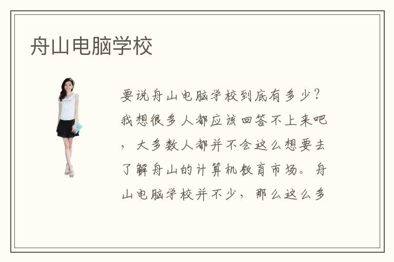 要說舟山電腦學(xué)校到底有多少?我想很多人都應(yīng)該回答不上來吧,大多數(shù)人都并不會(huì)這么想要去了解舟山的計(jì)算機(jī)教育市場。舟山電腦學(xué)校并不少,那么這么多舟山電腦學(xué)校在挑選的時(shí)候會(huì)不會(huì)造成很多困擾呢?答案是會(huì)的,也因此就有了舟山電腦學(xué)校排名數(shù)據(jù)的出現(xiàn)。舟山電腦學(xué)校的排名順序也就基本決定了舟山各大計(jì)算機(jī)培訓(xùn)學(xué)校的各方面綜合實(shí)力,是進(jìn)行舟山電腦學(xué)校最有效、最方便的依據(jù)。