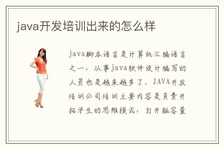 java腳本語言是計(jì)算機(jī)匯編語言之一,從事java軟件設(shè)計(jì)編寫的人員也是越來越多了。JAVA開發(fā)培訓(xùn)公司培訓(xùn)主要內(nèi)容是負(fù)責(zé)開拓學(xué)生的思維模式,打開腦容量,讓學(xué)生在實(shí)踐項(xiàng)目的研發(fā)中充分學(xué)會java相關(guān)專業(yè)知識。JAVA開發(fā)培訓(xùn)出來的畢業(yè)生就業(yè)率怎么樣?從JAVA開發(fā)培訓(xùn)出來后有沒有好的就業(yè)前景?從JAVA開發(fā)培訓(xùn)中心出來的效果好嗎?