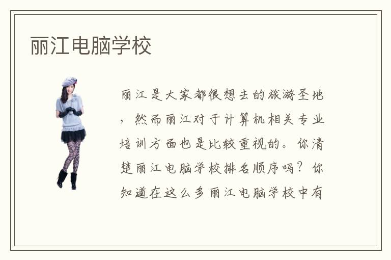 麗江是大家都很想去的旅游圣地,然而麗江對(duì)于計(jì)算機(jī)相關(guān)專業(yè)培訓(xùn)方面也是比較重視的。你清楚麗江電腦學(xué)校排名順序嗎?你知道在這么多麗江電腦學(xué)校中有哪些比較靠譜的培訓(xùn)機(jī)構(gòu)嗎?麗江電腦學(xué)校的排名是由麗江計(jì)算機(jī)相關(guān)專業(yè)的學(xué)生以及他們的家長(zhǎng)進(jìn)行投票而得出的結(jié)果,是根據(jù)各大麗江電腦學(xué)校的教學(xué)團(tuán)隊(duì)、師資力量以及學(xué)員課程安排等方面來(lái)進(jìn)行對(duì)比篩選的,是大家在選擇麗江電腦學(xué)校時(shí)候的依據(jù)。