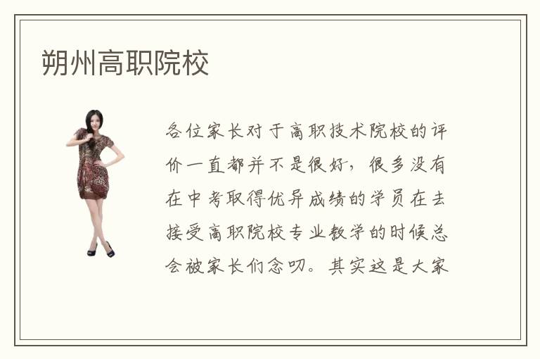 各位家長對于高職技術院校的評價一直都并不是很好,很多沒有在中考取得優(yōu)異成績的學員在去接受高職院校專業(yè)教學的時候總會被家長們念叨。其實這是大家對于高職院校的一種偏見,并不是所有的高職院校在教學質量方面是不過關的,朔州高職院校就受到了當?shù)厥忻竦南矏?。朔州高職院校在成立之初也是遭到了很多人的反對,然而堅持到現(xiàn)在朔州高職院校已經成為學員們進行專業(yè)學習的好平臺了。