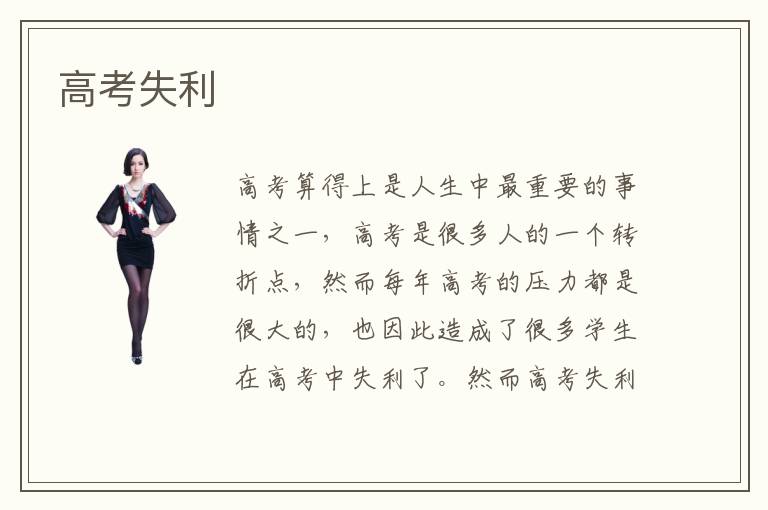 高考算得上是人生中最重要的事情之一,高考是很多人的一個(gè)轉(zhuǎn)折點(diǎn),然而每年高考的壓力都是很大的,也因此造成了很多學(xué)生在高考中失利了。然而高考失利會(huì)帶來(lái)什么樣的后果呢?高考失利了應(yīng)該怎么辦呢?高考失利后很多學(xué)生會(huì)開(kāi)始變得頹廢,考不上理想的大學(xué)而開(kāi)始人生的放棄,這樣的做法是不對(duì)的。要想擁有完美的人生并不是只有高考這一條道路的,只要選好了專業(yè)認(rèn)真學(xué)習(xí)照樣可以獲得成功。