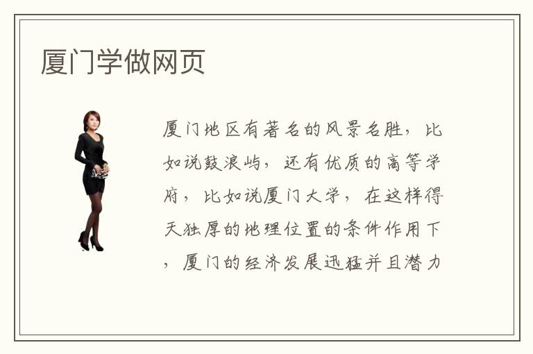 廈門地區(qū)有著名的風(fēng)景名勝,比如說鼓浪嶼,還有優(yōu)質(zhì)的高等學(xué)府,比如說廈門大學(xué),在這樣得天獨厚的地理位置的條件作用下,廈門的經(jīng)濟發(fā)展迅猛并且潛力巨大。廈門學(xué)做網(wǎng)頁的人越來越多,因為廈門的發(fā)展重點逐漸轉(zhuǎn)移到科技軟實力上。廈門地區(qū)網(wǎng)頁設(shè)計與制作專業(yè)吃香嗎?學(xué)習(xí)廈門的網(wǎng)頁設(shè)計與制作有什么方法?廈門網(wǎng)頁設(shè)計與制作培訓(xùn)機構(gòu)專業(yè)嗎?