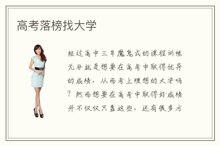 經(jīng)過高中三年魔鬼式的課程訓練無非就是想要在高考中取得優(yōu)異的成績,從而考上理想的大學嗎?然而想要在高考中取得好成績并不僅僅只靠這些,還有很多方面會產(chǎn)生影響的,例如高考的運氣如何,考生的心理素質(zhì)如何等等方面,那么高考落榜找大學困難嗎?高考落榜找大學自然是不容易的,但是想要學好專業(yè)技術(shù)卻苦于沒有優(yōu)異的成績,我還是比較推薦大家考慮一下專業(yè)技術(shù)培訓學校的。