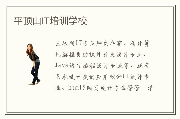 互聯(lián)網(wǎng)IT專業(yè)種類豐富,有計算機編程類的軟件開發(fā)設計專業(yè)、Java語言編程設計專業(yè)等,還有美術設計類的應用軟件UI設計專業(yè)、html5網(wǎng)頁設計專業(yè)等等。學員們可以根據(jù)自己的計算機基礎以及學習興趣和能力進行IT專業(yè)的選擇。平頂山IT培訓學校開設了當下很多熱門的計算機專業(yè),因此無論想要什么計算機專業(yè)基本都可以在平頂山IT培訓學校的培訓課程上看到,平頂山IT培訓學校是大家學習專業(yè)的好平臺。
