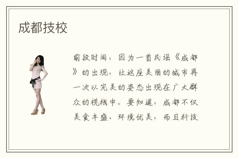 前段時(shí)間,因?yàn)橐皇酌裰{《成都》的出現(xiàn),讓這座美麗的城市再一次以完美的姿態(tài)出現(xiàn)在廣大群眾的視線中。要知道,成都不僅美食豐盛、環(huán)境優(yōu)美,而且科技技術(shù)發(fā)展得有聲有色。那么,有人想問成都技校究竟是什么性質(zhì)的培訓(xùn)學(xué)校呢?成都技校地理位置是在哪里的?成都技術(shù)培訓(xùn)學(xué)校主要訓(xùn)練專業(yè)課程是什么?其實(shí),成都技術(shù)培訓(xùn)中心擅長計(jì)算機(jī)專業(yè)的教導(dǎo)。
