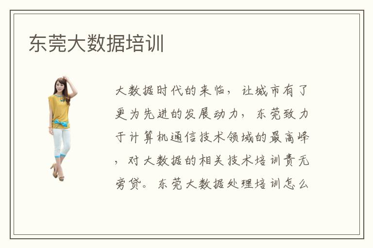 大數(shù)據(jù)時代的來臨,讓城市有了更為先進的發(fā)展動力,東莞致力于計算機通信技術(shù)領(lǐng)域的最高峰,對大數(shù)據(jù)的相關(guān)技術(shù)培訓(xùn)責無旁貸。東莞大數(shù)據(jù)處理培訓(xùn)怎么樣?東莞大數(shù)據(jù)培訓(xùn)是專業(yè)的、高質(zhì)量的、高水準的,東莞大數(shù)據(jù)培訓(xùn)主要的方向是拓寬學(xué)生視野、保持創(chuàng)新思維、加強思維邏輯性。東莞大數(shù)據(jù)培訓(xùn)學(xué)校機構(gòu)有哪些?東莞大數(shù)據(jù)處理專業(yè)而全面。