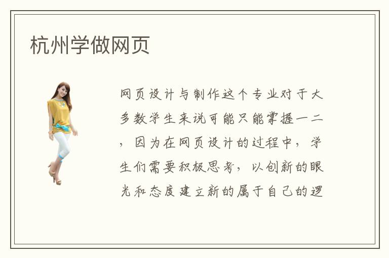 網(wǎng)頁(yè)設(shè)計(jì)與制作這個(gè)專業(yè)對(duì)于大多數(shù)學(xué)生來(lái)說(shuō)可能只能掌握一二,因?yàn)樵诰W(wǎng)頁(yè)設(shè)計(jì)的過(guò)程中,學(xué)生們需要積極思考,以創(chuàng)新的眼光和態(tài)度建立新的屬于自己的邏輯體系來(lái)創(chuàng)建一個(gè)網(wǎng)頁(yè)框架。杭州學(xué)做網(wǎng)頁(yè)好學(xué)嗎?杭州網(wǎng)頁(yè)設(shè)計(jì)與制作專業(yè)的培訓(xùn)質(zhì)量越來(lái)越優(yōu)秀。杭州地區(qū)網(wǎng)頁(yè)設(shè)計(jì)專業(yè)就業(yè)前景如何?杭州學(xué)習(xí)網(wǎng)頁(yè)設(shè)計(jì)與制作專業(yè)的學(xué)生未來(lái)的就業(yè)條件會(huì)比較好。