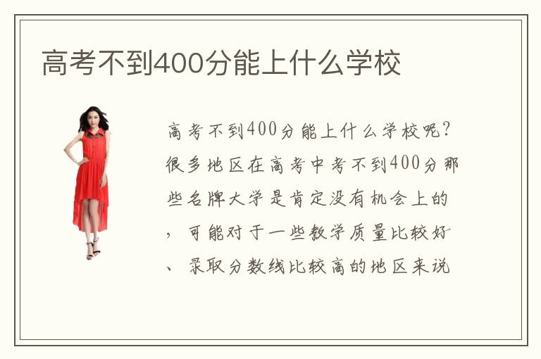 高考不到400分能上什么學(xué)校呢?很多地區(qū)在高考中考不到400分那些名牌大學(xué)是肯定沒有機(jī)會(huì)上的,可能對(duì)于一些教學(xué)質(zhì)量比較好、錄取分?jǐn)?shù)線比較高的地區(qū)來說,高考沒有400分的同學(xué)都不能去上一所大學(xué)。掌握好一門具有發(fā)展前途的專業(yè)技術(shù)才是更好立足于社會(huì)的根本,考不上好大學(xué)的同學(xué)可以考慮一些以技術(shù)專業(yè)化教學(xué)為主的培訓(xùn)機(jī)構(gòu),這些培訓(xùn)機(jī)構(gòu)的教學(xué)方式相對(duì)來說也更適合大家。