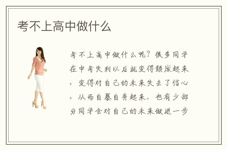 考不上高中做什么呢?很多同學(xué)在中考失利以后就變得頹廢起來,變得對自己的未來失去了信心,從而自暴自棄起來。也有少部分同學(xué)會對自己的未來做進一步的規(guī)劃,開始了解國內(nèi)市場的發(fā)展情況,選擇適合自己學(xué)習(xí)以及未來發(fā)展比較有前景的專業(yè)課程,給自己的人生指明了道路。考不上高中做什么?最重要的就是讓自己從沮喪中走出來,最重要的是要對自己的未來負責(zé)任。