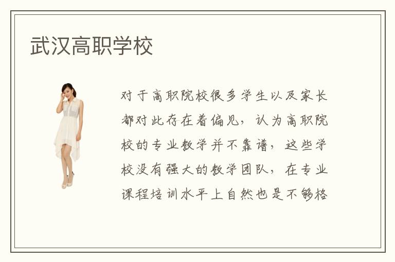 對于高職院校很多學生以及家長都對此存在著偏見,認為高職院校的專業(yè)教學并不靠譜,這些學校沒有強大的教學團隊,在專業(yè)課程培訓水平上自然也是不夠格的,是反對孩子進入這些高職院校學習專業(yè)技術(shù)的。其實這只是少部分高職院校的情況,大多數(shù)的武漢高職學校還是挺靠譜的,武漢高職學校課程新穎、教學專業(yè),因此只要學員們自己足夠努力,再通過武漢高職學校專業(yè)化的培訓一定可以短時間學好技術(shù)。