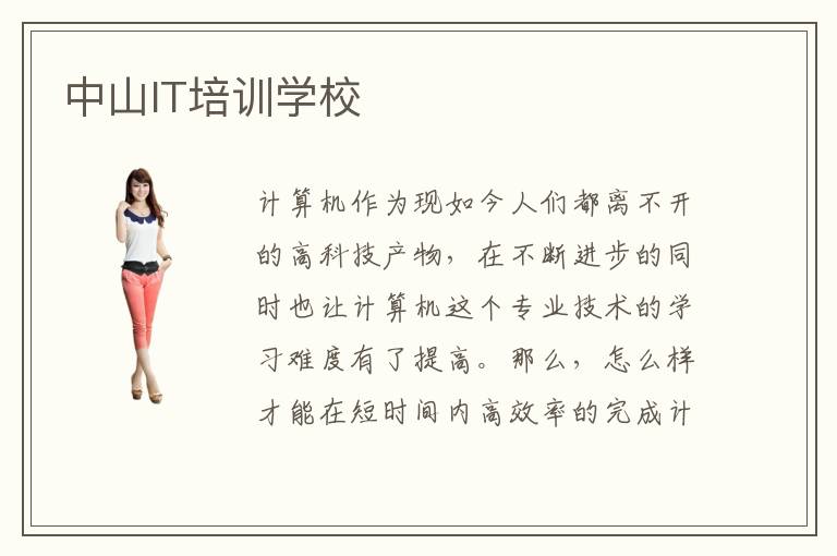 計算機作為現(xiàn)如今人們都離不開的高科技產(chǎn)物,在不斷進步的同時也讓計算機這個專業(yè)技術(shù)的學(xué)習(xí)難度有了提高。那么,怎么樣才能在短時間內(nèi)高效率的完成計算機相關(guān)專業(yè)技術(shù)的學(xué)習(xí)呢?找到一所靠譜的專業(yè)計算機培訓(xùn)學(xué)校是很關(guān)鍵的一步,中山IT培訓(xùn)學(xué)校就是這樣一所各方面實力都比較靠譜的學(xué)習(xí)平臺。中山IT培訓(xùn)學(xué)校擁有國內(nèi)頂尖的專業(yè)電腦教學(xué)團隊,對于IT專業(yè)的培訓(xùn)是很自信的。
