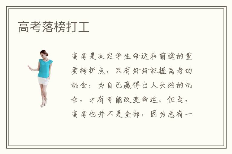高考是決定學(xué)生命運(yùn)和前途的重要轉(zhuǎn)折點(diǎn),只有好好把握高考的機(jī)會(huì),為自己贏得出人頭地的機(jī)會(huì),才有可能改變命運(yùn)。但是,高考也并不是全部,因?yàn)榭傆幸恍┤瞬⒉贿m合學(xué)習(xí)學(xué)術(shù)理論,那些人往往擁有比較靈敏的思維,適合獨(dú)立創(chuàng)業(yè)。高考落榜打工是一個(gè)磨練自己的機(jī)會(huì),高考落榜生考不上大學(xué)打工能夠鍛煉人際交往能力。高考落榜生打工有前途嗎?