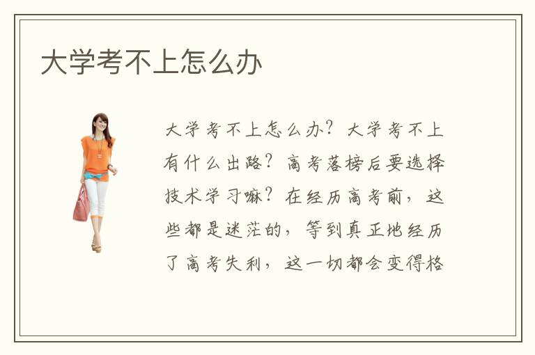 大學考不上怎么辦?大學考不上有什么出路?高考落榜后要選擇技術(shù)學習嘛?在經(jīng)歷高考前,這些都是迷茫的,等到真正地經(jīng)歷了高考失利,這一切都會變得格外地急迫,因為我們要對自己的人生負責,要好好地規(guī)劃未來的人生發(fā)展道路。如果說大學考不上怎么辦?大學考不上的話需要仔細地思考一下是否是偶然還是必然,對癥下藥,早日做出新的規(guī)劃。