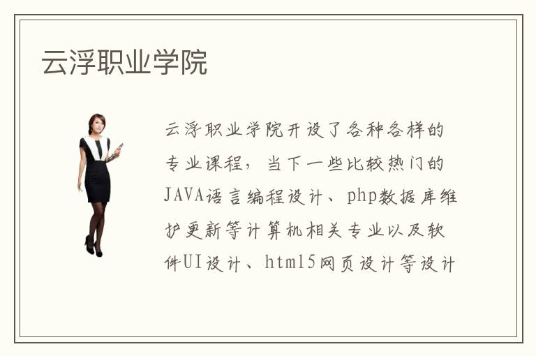 云浮職業(yè)學(xué)院開設(shè)了各種各樣的專業(yè)課程,當(dāng)下一些比較熱門的JAVA語言編程設(shè)計(jì)、php數(shù)據(jù)庫維護(hù)更新等計(jì)算機(jī)相關(guān)專業(yè)以及軟件UI設(shè)計(jì)、html5網(wǎng)頁設(shè)計(jì)等設(shè)計(jì)相關(guān)專業(yè),都是大家去云浮職業(yè)學(xué)院進(jìn)行專業(yè)選擇時(shí)的首選。云浮職業(yè)學(xué)院通過開設(shè)了這么多豐富的專業(yè)課程,為學(xué)員們?nèi)〉酶嗟膶I(yè)選擇機(jī)會,很大程度的通過對于專業(yè)課程的興趣培養(yǎng)來完成對于專業(yè)課程的學(xué)習(xí)。