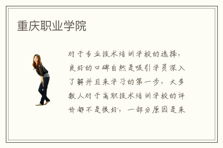 對于專業(yè)技術(shù)培訓(xùn)學(xué)校的選擇,良好的口碑自然是吸引學(xué)員深入了解并且來學(xué)習(xí)的第一步,大多數(shù)人對于高職技術(shù)培訓(xùn)學(xué)校的評價都不是很好,一部分原因是來自于大多數(shù)高職院校的專業(yè)課程教學(xué)質(zhì)量不夠好,另一部分則是來自于大家對于高職院校日積月累的偏見。當(dāng)然還是存在著不少教學(xué)水平高的高職院校的,那么你知道重慶職業(yè)學(xué)院中哪些高職院校的口碑比較好呢?