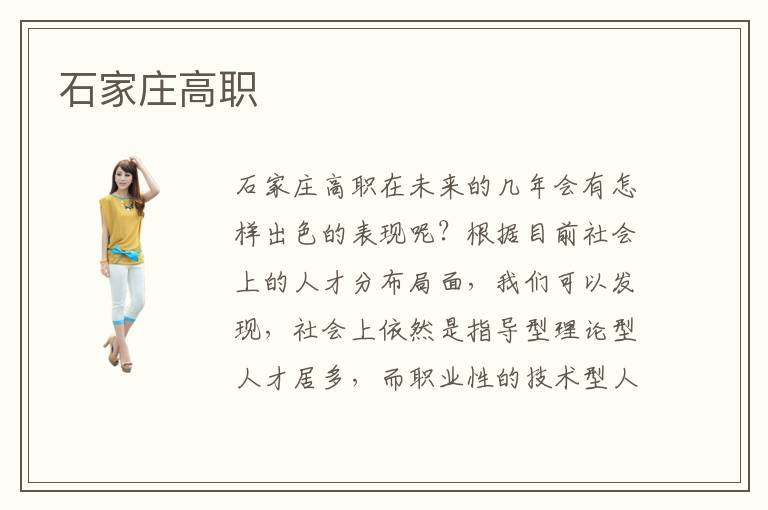 石家莊高職在未來(lái)的幾年會(huì)有怎樣出色的表現(xiàn)呢?根據(jù)目前社會(huì)上的人才分布局面,我們可以發(fā)現(xiàn),社會(huì)上依然是指導(dǎo)型理論型人才居多,而職業(yè)性的技術(shù)型人才則稀缺,所以,石家莊職業(yè)技術(shù)學(xué)校未來(lái)的發(fā)展前景很可觀,因?yàn)閲?guó)家需要更多的技術(shù)層面的人才。那么,如何才能選擇到適合自己的石家莊技校呢?可以參考石家莊職業(yè)技校綜合實(shí)力排名。
