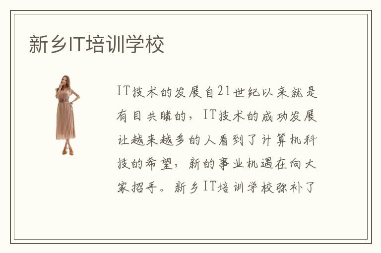 IT技術的發(fā)展自21世紀以來就是有目共睹的,IT技術的成功發(fā)展讓越來越多的人看到了計算機科技的希望,新的事業(yè)機遇在向大家招手。新鄉(xiāng)IT培訓學校彌補了自學IT技術時學習效率低、學習方式差、學習狀態(tài)不佳的問題,能夠集中學生們的注意力,保持IT技術的教育新鮮感。新鄉(xiāng)IT培訓機構發(fā)展是很有潛力的。新鄉(xiāng)IT技術發(fā)展?jié)摿Υ螅瑢W生在新鄉(xiāng)IT技術學校發(fā)展會比較成功。