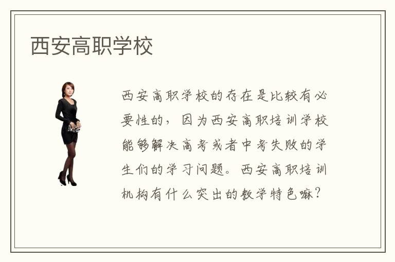 西安高職學(xué)校的存在是比較有必要性的,因?yàn)?a href="/it/detail3284.html">西安高職培訓(xùn)學(xué)校能夠解決高考或者中考失敗的學(xué)生們的學(xué)習(xí)問(wèn)題。西安高職培訓(xùn)機(jī)構(gòu)有什么突出的教學(xué)特色嘛?西安高職培訓(xùn)中心能夠及時(shí)根據(jù)時(shí)代的變化調(diào)整尋找到新的教學(xué)培訓(xùn)方向。西安高職學(xué)校主要培訓(xùn)方向是什么?西安高職培訓(xùn)學(xué)校教學(xué)風(fēng)格多元化,趨于現(xiàn)實(shí),能夠更深層次地了解學(xué)生們的學(xué)習(xí)需求。