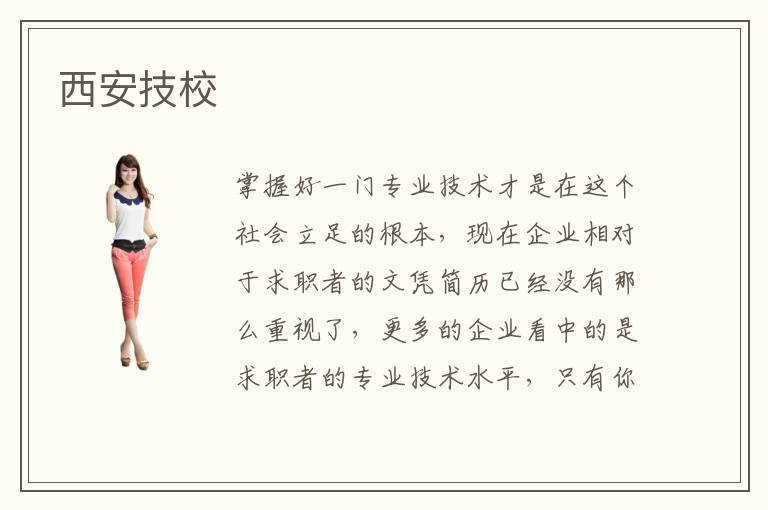 掌握好一門專業(yè)技術(shù)才是在這個社會立足的根本,現(xiàn)在企業(yè)相對于求職者的文憑簡歷已經(jīng)沒有那么重視了,更多的企業(yè)看中的是求職者的專業(yè)技術(shù)水平,只有你的專業(yè)技術(shù)達(dá)到企業(yè)的用人標(biāo)準(zhǔn)才會被錄用,假設(shè)你的文憑學(xué)歷再完美都是無用的??梢妼W(xué)好一門專業(yè)技術(shù)在現(xiàn)今這個社會是很重要的,首先要做的一點就是找到一所靠譜的專業(yè)技術(shù)培訓(xùn)學(xué)校,那么西安技校怎么樣呢?