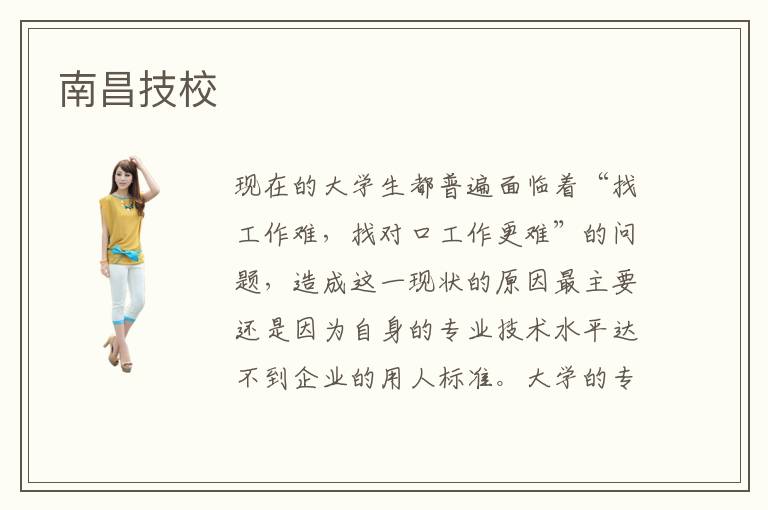 現(xiàn)在的大學(xué)生都普遍面臨著“找工作難,找對口工作更難”的問題,造成這一現(xiàn)狀的原因最主要還是因?yàn)樽陨淼膶I(yè)技術(shù)水平達(dá)不到企業(yè)的用人標(biāo)準(zhǔn)。大學(xué)的專業(yè)知識教學(xué)普遍都是比較系統(tǒng)的,通常會(huì)花很多課程進(jìn)行專業(yè)技術(shù)的理論知識講解,因此大學(xué)生們的四年學(xué)習(xí)生活也并不能很好的掌握專業(yè)技術(shù)。而高職技術(shù)培訓(xùn)學(xué)校是比較注重技術(shù)培訓(xùn)的,相比大學(xué)更注重學(xué)員們的就業(yè)問題,那么南昌技校怎么樣呢?