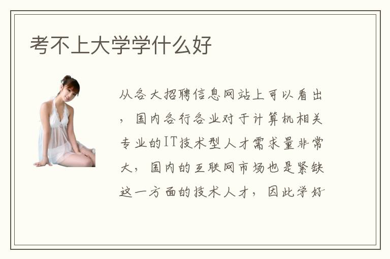 從各大招聘信息網(wǎng)站上可以看出,國內(nèi)各行各業(yè)對于計算機相關專業(yè)的IT技術型人才需求量非常大,國內(nèi)的互聯(lián)網(wǎng)市場也是緊缺這一方面的技術人才,因此學好計算機相關專業(yè)在國內(nèi)的發(fā)展前景還是很廣闊的??疾簧洗髮W學什么專業(yè)比較好呢?從國內(nèi)信息化趨勢的發(fā)展來看,學好計算機相關專業(yè)還是很有必要的,因此考不上大學的同學學習計算機專業(yè)可以更好的保障自己未來的就業(yè)。