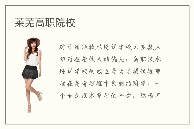 對于高職技術(shù)培訓(xùn)學(xué)校大多數(shù)人都存在著很大的偏見,高職技術(shù)培訓(xùn)學(xué)校的成立是為了提供給那些在高考過程中失利的同學(xué),一個專業(yè)技術(shù)學(xué)習(xí)的平臺,然而不好的口碑使得家長們很不放心孩子進(jìn)入高職技術(shù)培訓(xùn)學(xué)校進(jìn)行專業(yè)課程的學(xué)習(xí)。對于萊蕪高職院校的評價,當(dāng)然也是因為由于這些偏見自然不是很好,但是這并不代表萊蕪高職院校的專業(yè)培訓(xùn)效果不好,萊蕪高職院校也在為改善口碑做著努力。
