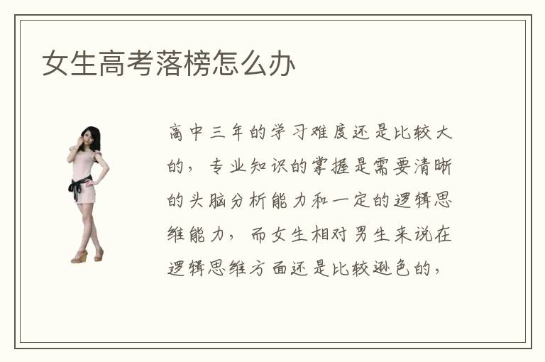 高中三年的學習難度還是比較大的,專業(yè)知識的掌握是需要清晰的頭腦分析能力和一定的邏輯思維能力,而女生相對男生來說在邏輯思維方面還是比較遜色的,因此高中三年的學習對于女生們來說還是比較辛苦的。高中落榜的成員中女生的比例是要高于男生比例的,那么女生高考落榜怎么辦呢?女生們比較有鎖的還是他們的審美,現(xiàn)在有很多比較具有發(fā)展前景的美術設計專業(yè),高考落榜的女生可以選擇這些專業(yè)進行學習。