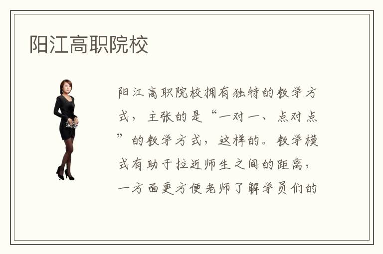 陽(yáng)江高職院校擁有獨(dú)特的教學(xué)方式,主張的是“一對(duì)一、點(diǎn)對(duì)點(diǎn)”的教學(xué)方式,這樣的。教學(xué)模式有助于拉近師生之間的距離,一方面更方便老師了解學(xué)員們的專業(yè)掌握情況,并且根據(jù)學(xué)員們的學(xué)習(xí)進(jìn)度安排相應(yīng)的專業(yè)課程,另一方面也方便學(xué)員們向老師提出問(wèn)題,并且有足夠的時(shí)間和精力去深入解決這些問(wèn)題,這樣高效的教學(xué)模式一定可以讓學(xué)員們的專業(yè)技術(shù)學(xué)習(xí)效果最大化。