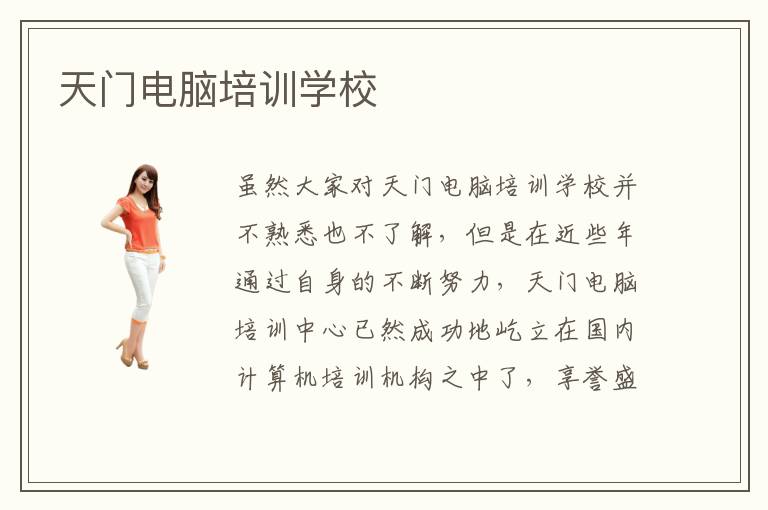 雖然大家對天門電腦培訓(xùn)學(xué)校并不熟悉也不了解,但是在近些年通過自身的不斷努力,天門電腦培訓(xùn)中心已然成功地屹立在國內(nèi)計算機(jī)培訓(xùn)機(jī)構(gòu)之中了,享譽(yù)盛名。天門計算機(jī)學(xué)校教學(xué)質(zhì)量有保證,天門計算機(jī)學(xué)校教學(xué)內(nèi)容豐富多彩、實踐應(yīng)用及時有效,通過天門計算機(jī)學(xué)校的培訓(xùn),學(xué)生能夠有更多的收獲。天門計算機(jī)培訓(xùn)機(jī)構(gòu)為這個社會輸送了源源不斷的人才。