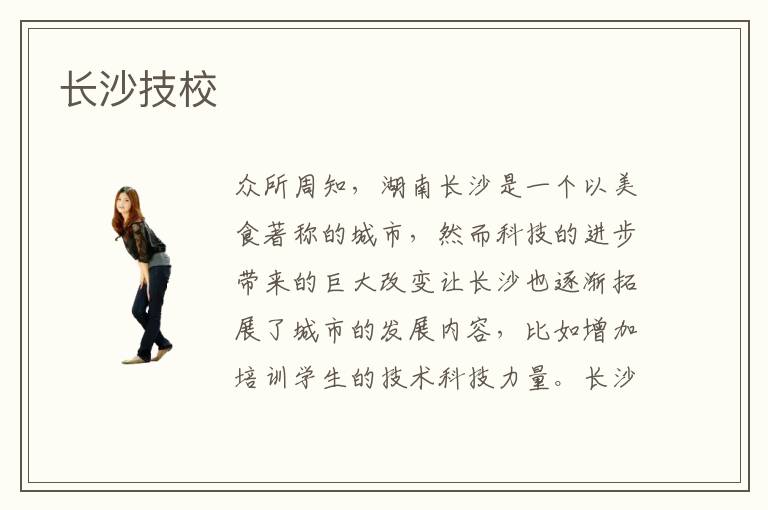 眾所周知,湖南長(zhǎng)沙是一個(gè)以美食著稱的城市,然而科技的進(jìn)步帶來的巨大改變讓長(zhǎng)沙也逐漸拓展了城市的發(fā)展內(nèi)容,比如增加培訓(xùn)學(xué)生的技術(shù)科技力量。長(zhǎng)沙技校主要圍繞的是培訓(xùn)學(xué)生們的技術(shù)和科技水平。長(zhǎng)沙技術(shù)培訓(xùn)機(jī)構(gòu)專業(yè)程度高嗎?長(zhǎng)沙電腦培訓(xùn)班保障了學(xué)生們的高效作業(yè)和高質(zhì)學(xué)習(xí)。長(zhǎng)沙技術(shù)學(xué)校具體地址是什么?長(zhǎng)沙技校的地理位置條件怎么樣?