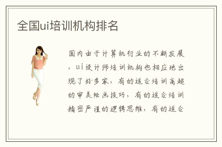 國內(nèi)由于計(jì)算機(jī)行業(yè)的不斷發(fā)展,ui設(shè)計(jì)師培訓(xùn)機(jī)構(gòu)也相應(yīng)地出現(xiàn)了好多家,有的適合培訓(xùn)高超的審美繪畫技巧,有的適合培訓(xùn)精密嚴(yán)謹(jǐn)?shù)倪壿嬎季S,有的適合培訓(xùn)高難度的算法設(shè)計(jì)、界面設(shè)計(jì),ui設(shè)計(jì)師設(shè)計(jì)師培訓(xùn)機(jī)構(gòu)的培訓(xùn)方面有很多,多樣化的培訓(xùn)技能保持了相對(duì)穩(wěn)定的人才輸出和多樣化的人才保持。全國ui培訓(xùn)機(jī)構(gòu)排名是什么?全國ui培訓(xùn)學(xué)校排名情況表如何?