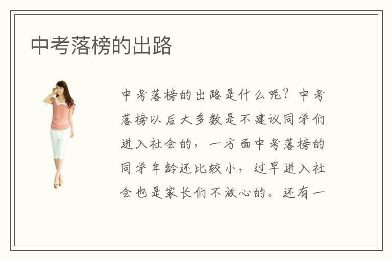 中考落榜的出路是什么呢?中考落榜以后大多數(shù)是不建議同學(xué)們進入社會的,一方面中考落榜的同學(xué)年齡還比較小,過早進入社會也是家長們不放心的。還有一個方面就是中考落榜的同學(xué)由于經(jīng)驗的不足,在并沒有很好掌握一門專業(yè)技術(shù)的情況下是不能立足于社會的。因此也就說明了中考落榜的出路首先就是要找到一門適合自己,并且具有廣闊發(fā)展前景的專業(yè)去努力學(xué)習(xí)它。