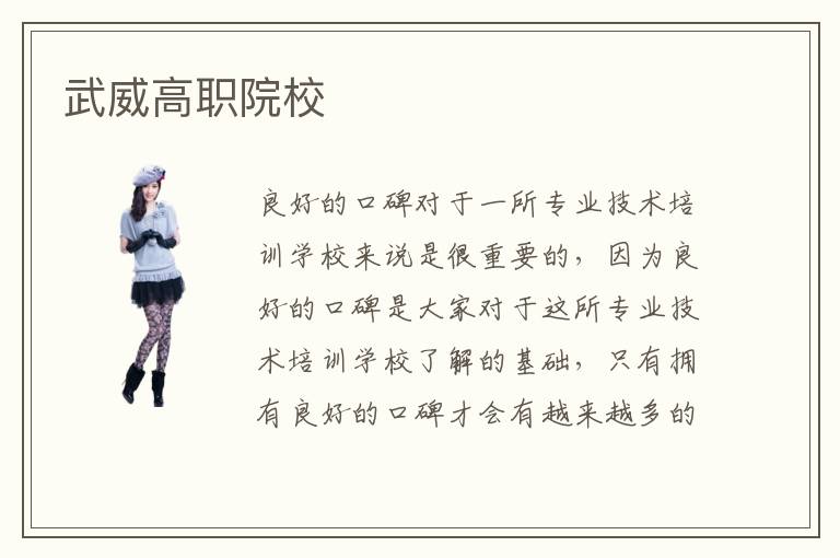 良好的口碑對于一所專業(yè)技術(shù)培訓學校來說是很重要的,因為良好的口碑是大家對于這所專業(yè)技術(shù)培訓學校了解的基礎(chǔ),只有擁有良好的口碑才會有越來越多的同學對這所專業(yè)技術(shù)培訓學校產(chǎn)生信任。那么,武威高職院校的口碑怎么樣呢?武威高職院校是不是一所比較靠譜的專業(yè)技術(shù)培訓學校呢?武威高職院校擁有國內(nèi)一流的專業(yè)教學團隊,合理的專業(yè)課程安排使得武威高職院校擁有良好的口碑。