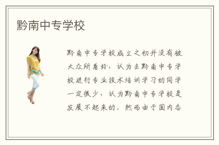 黔南中專學校成立之初并沒有被大眾所看好,認為去黔南中專學校進行專業(yè)技術培訓學習的同學一定很少,認為黔南中專學校是發(fā)展不起來的。然而由于國內各大企業(yè)對于技術型人才的需求量擴大,也隨著各大專業(yè)技術在國內的發(fā)展前景很廣闊,使得黔南中專學校成為了很多同學進行專業(yè)技術學習的靠譜平臺,通過黔南中專學校的課程培訓,可以為自己今后的就業(yè)發(fā)展獲得更多的機會。