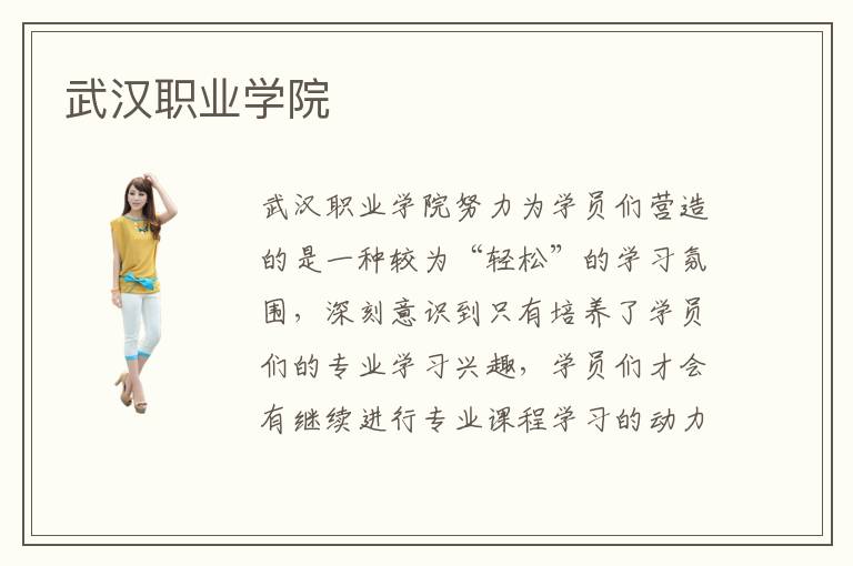 武漢職業(yè)學(xué)院努力為學(xué)員們營(yíng)造的是一種較為“輕松”的學(xué)習(xí)氛圍,深刻意識(shí)到只有培養(yǎng)了學(xué)員們的專(zhuān)業(yè)學(xué)習(xí)興趣,學(xué)員們才會(huì)有繼續(xù)進(jìn)行專(zhuān)業(yè)課程學(xué)習(xí)的動(dòng)力。在這種比較輕松的學(xué)習(xí)環(huán)境下更能夠激發(fā)學(xué)員們的學(xué)習(xí)興趣,也能緩解學(xué)員們?cè)趯?zhuān)業(yè)學(xué)習(xí)過(guò)程中遇到的壓力。然而在輕松的環(huán)境下更加高效的學(xué)習(xí)是要建立在同學(xué)們認(rèn)真的態(tài)度上的,沒(méi)有學(xué)習(xí)專(zhuān)業(yè)的努力只能使得學(xué)員們浪費(fèi)了大好的青春。