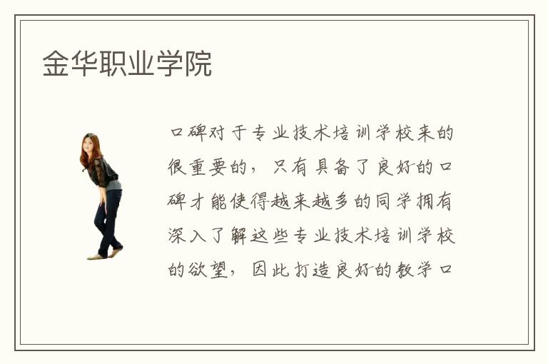 口碑對于專業(yè)技術(shù)培訓(xùn)學(xué)校來的很重要的,只有具備了良好的口碑才能使得越來越多的同學(xué)擁有深入了解這些專業(yè)技術(shù)培訓(xùn)學(xué)校的欲望,因此打造良好的教學(xué)口碑是大多數(shù)專業(yè)技術(shù)培訓(xùn)學(xué)校一直在努力的方向。那么,金華職業(yè)學(xué)院的教學(xué)口碑好不好呢?金華職業(yè)學(xué)院的教學(xué)質(zhì)量夠不夠?qū)I(yè)呢?金華職業(yè)學(xué)院總的來說還是很可靠的,教學(xué)實(shí)力自然也是得到了大多數(shù)同學(xué)的肯定。