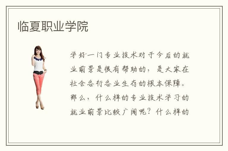 學好一門專業(yè)技術對于今后的就業(yè)前景是很有幫助的,是大家在社會各行各業(yè)生存的根本保障。那么,什么樣的專業(yè)技術學習的就業(yè)前景比較廣闊呢?什么樣的專業(yè)技術學習比較靠譜呢?臨夏職業(yè)學院作為職業(yè)技術培訓學校中比較靠譜的一所,已經(jīng)獲得了廣大市民的信任,在相關專業(yè)的教學質(zhì)量上都是比較可靠的。想要學習專業(yè)技術的同學可以加入到臨夏職業(yè)學院中去。